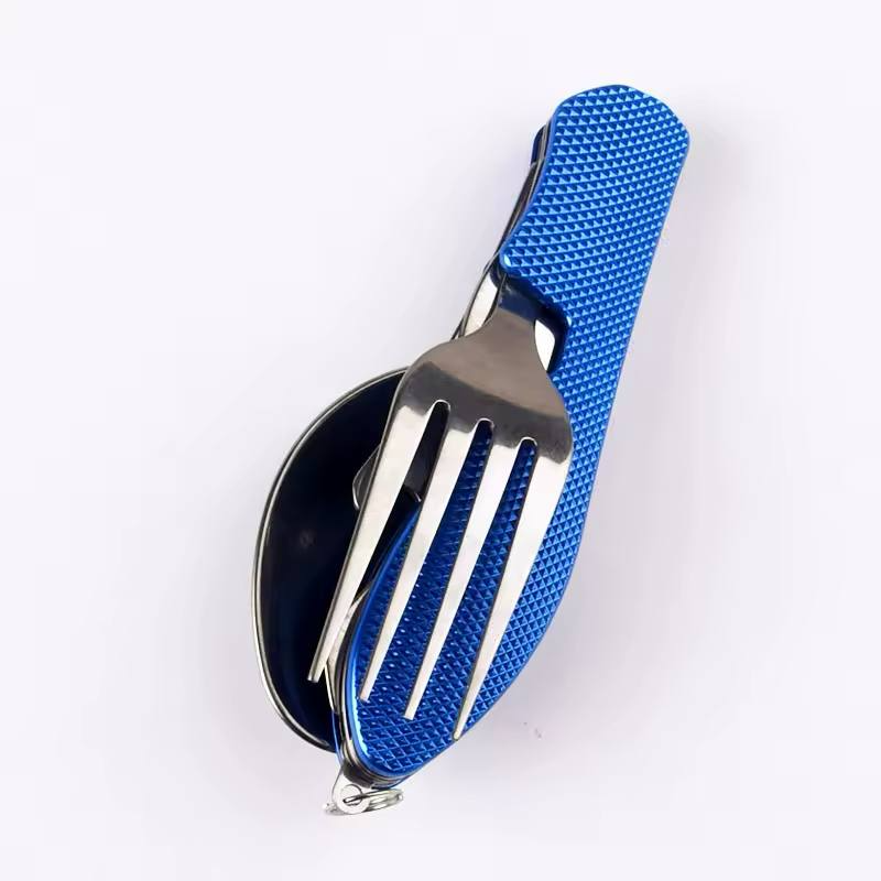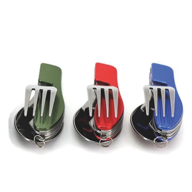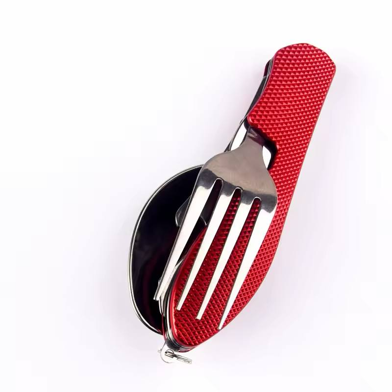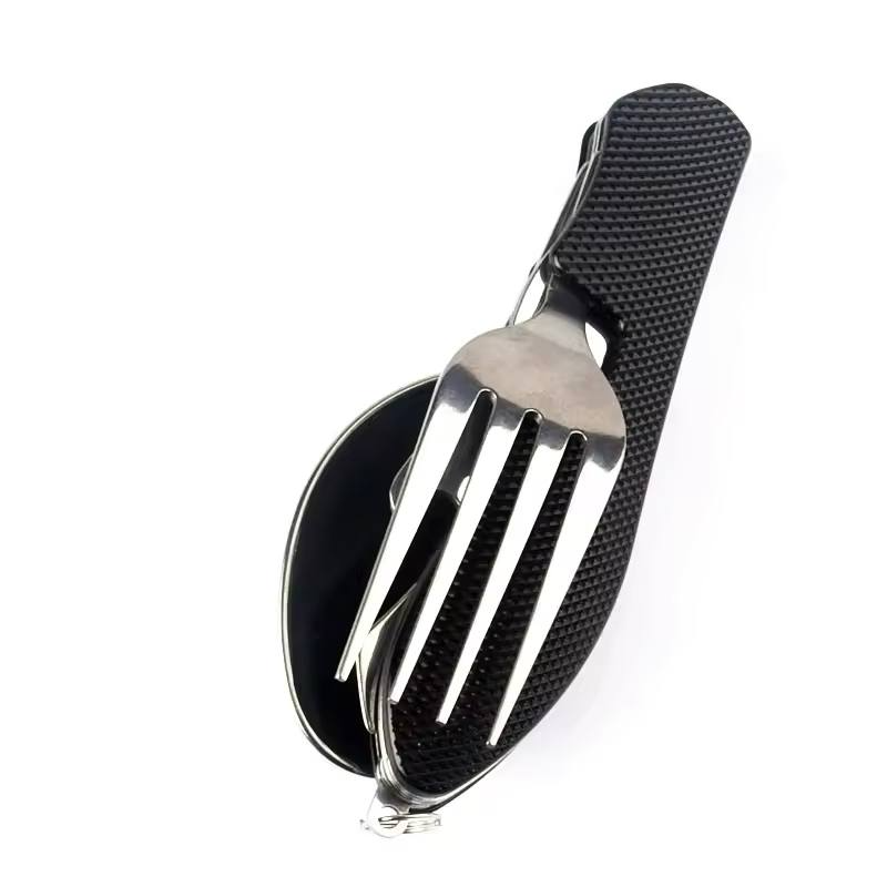 قاشق چنگال چند کاره مناسب و کم جا و کاربردی سفر قابلیت تاشو سبک و کم حجم طول 18 سانتی متر دارای حلقه اتصال به کوله ابعاد تا شده 10x2 سانتی متر جنس دسته از پلاستیک شیاردار مناسب کوهنوردی، کمپینگ، سفر جنس ابزار از استیل ضد زنگ و مرغوب قابلیت جدا کردن قطعات از یکدیگر و استفاده به صورت مجزا شامل قاشق و چنگال، چاقو، درب باز کن بطری و درب باز کن کنسرو