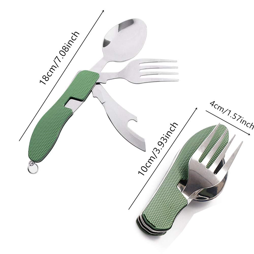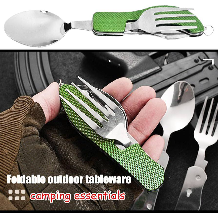 قاشق چنگال سفری کوهنوردی چند کاره استیل تاشو بسیار با کیفیت و عالی برای ورزش شما عزیزان و ورزشکاران می باشد تا با ارامش خاطر و لذت کامل به ورزش مورد علاقتان بپردازید. داشتن ظروف چند منظوره راه بسیار خوبی برای کاهش حجم بار همراه شما در کوهنوردی و کمپینگ است. قاشق و چنگال کوهنوردی چند کاره از جنس استیل مرغوب و ضد زنگ می باشد که مناسب استفاده در هر شرایط آب و هوایی است. دسته ی این محصول از جنس آلومینیوم شیاردار است تا اصطکاک لازم را در هنگام استفاده بین کف دست شما و دسته ی چاقو ایجاد کند و مانع از لیز خوردن ابزار شود. این ست کوهنوردی شامل قاشق و چنگال، چاقو، درب باز کن بطری و درب باز کن کنسرو می باشد که یک پک کامل را برای خوردن و آشامیدن برای شما فراهم کرده است. از ویژگی های دیگر این ابزار می توان به جدا کردن سریع و راحت قطعات از یکدیگر اشاره کرد، تا شما بتوانید از هر کدام که مایل باشید به تنهایی استفاده کنید. طول این محصول 18 سانتی متر است و قابلیت تاشدن دارد. در انتهای این ابزار چند کاره حلقه ای به منظور آویزان کردن آن از کوله پشتی در نظر گرفته شده است. قابلیت های عملکردی متفاوت، حجم و وزن کم، این ست قاشق و چنگال کوهنوردی را در میان مصرف کنندگان بسیار محبوب کرده است.